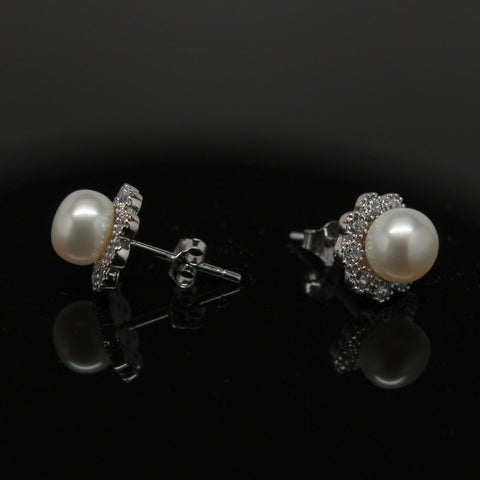 Freshwater pearl stud earrings - White