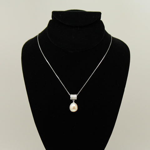 Freshwater pearl pendant - Silver chain