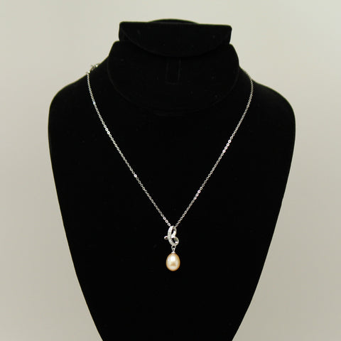 Freshwater pearl pendant - Pink silver chain