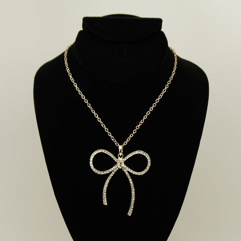 Synthetic diamond bow pendant necklace