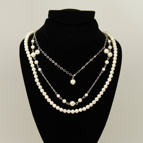 Synthetic pearl 3 layer necklace - White