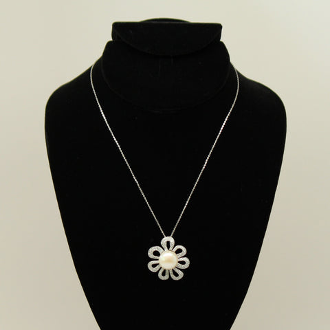Freshwater pearl pendant radiant flower - Silver chain