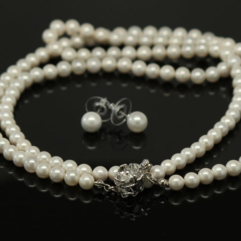 Synthetic pearl 6 mm necklace and earring set - White