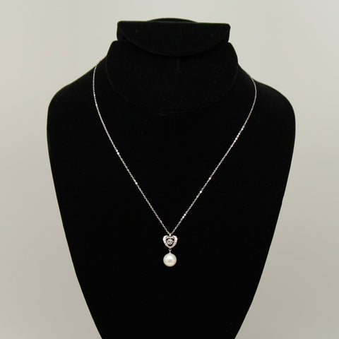 Freshwater pearl pendant - Silver chain white