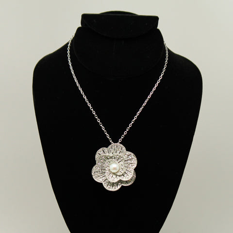 Freshwater pearl - Silver camellia shaped brooch