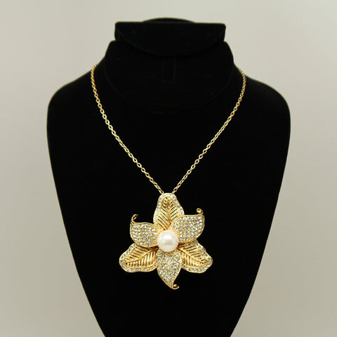 Freshwater pearl - Gold camellia shaped brooch